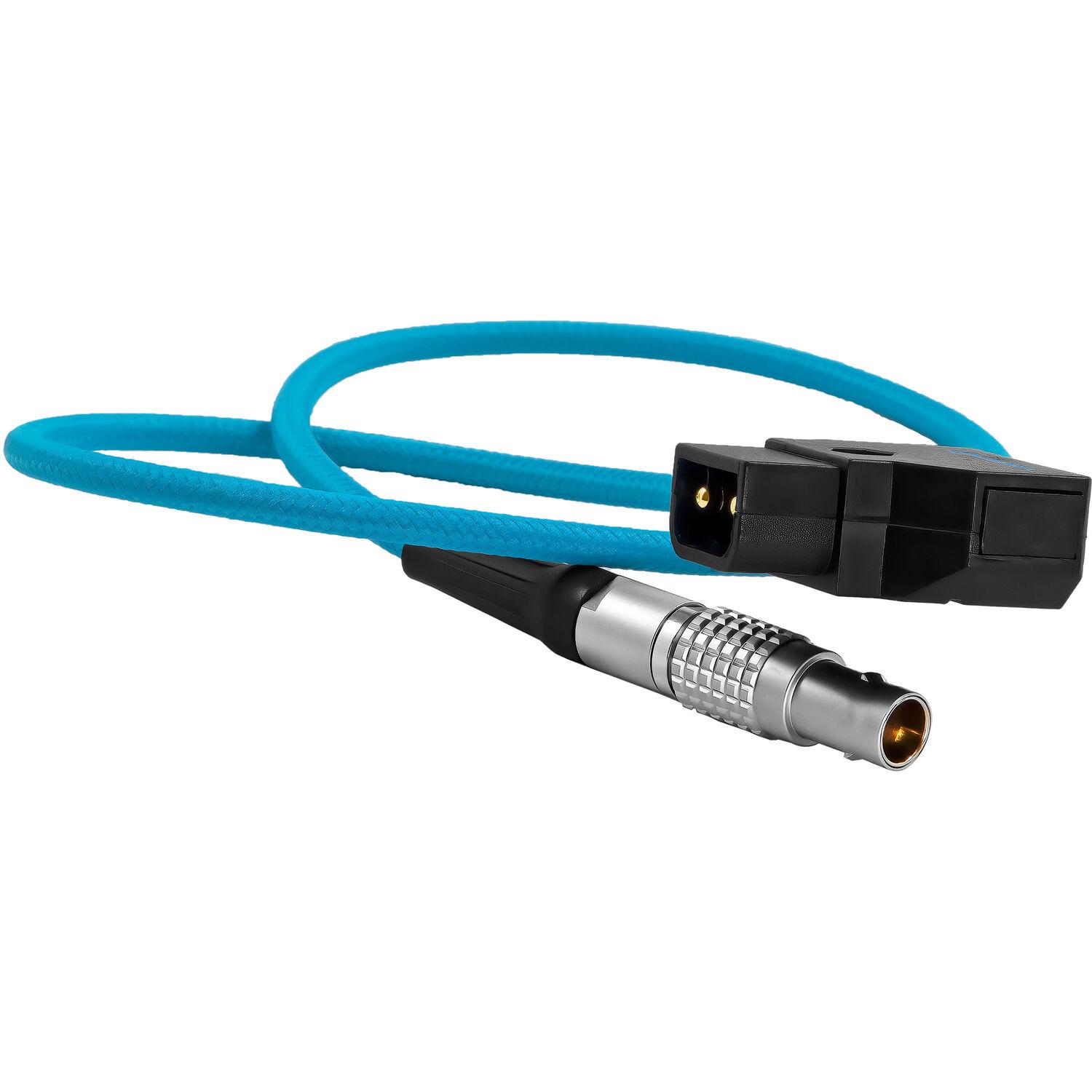 Power your camera or device from a professional V-mount or Gold mount battery with this D-Tap to LEMO 0B-Type 2-Pin Male Power Cable from Kondor Blue. The cable features a D-Tap connector on one end and a 2-pin LEMO 0B-type connector on the other.