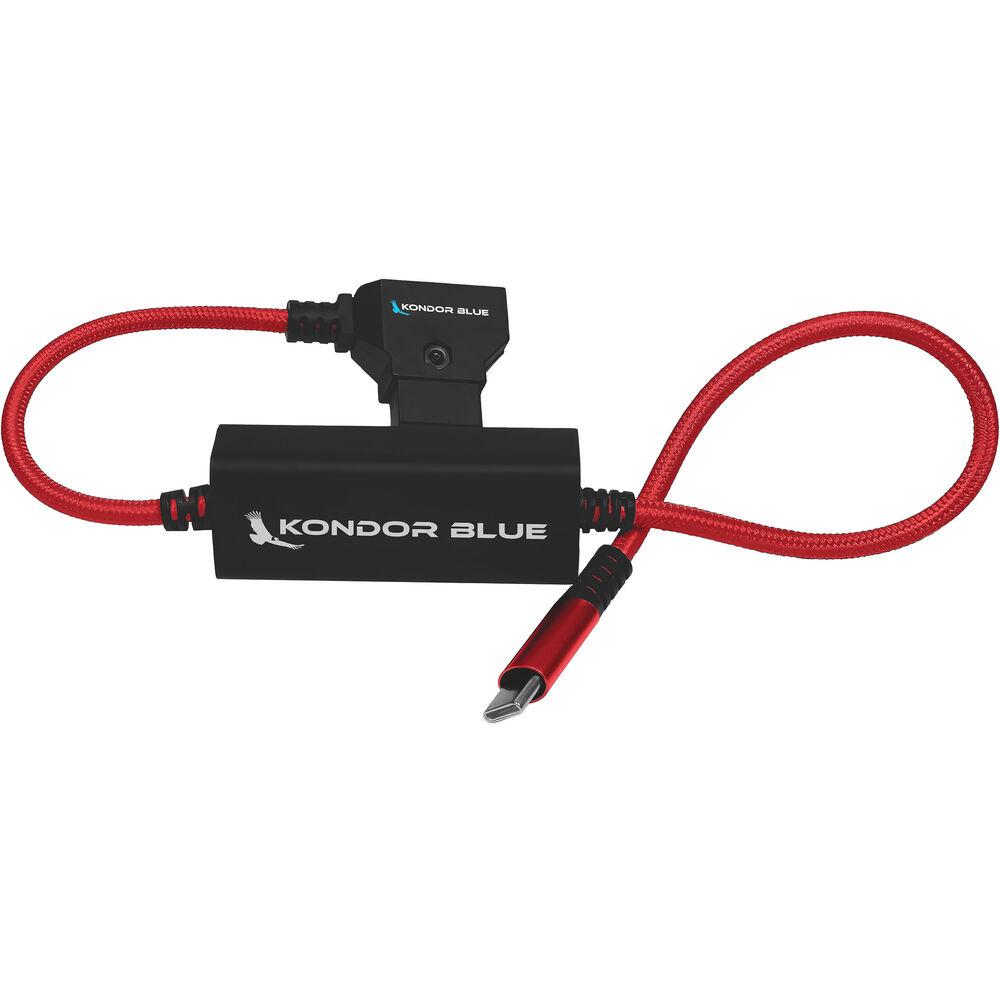 Power your wireless follow focus motor, smartphone, camera, or other USB-C accessory from a D-Tap power source using this cardinal red D-Tap to USB-C Power Delivery Cable from Kondor Blue. This 16" long cable features a D-Tap connector on one end and a USB-C connector on the other, and it allows you to power a mirrorless camera, laptop, or accessory with a USB-C power input, such as a Canon R5 C or Sony FX3, from a battery or plate with a D-Tap output. The cable supports up to 65W output using a smart PD device.