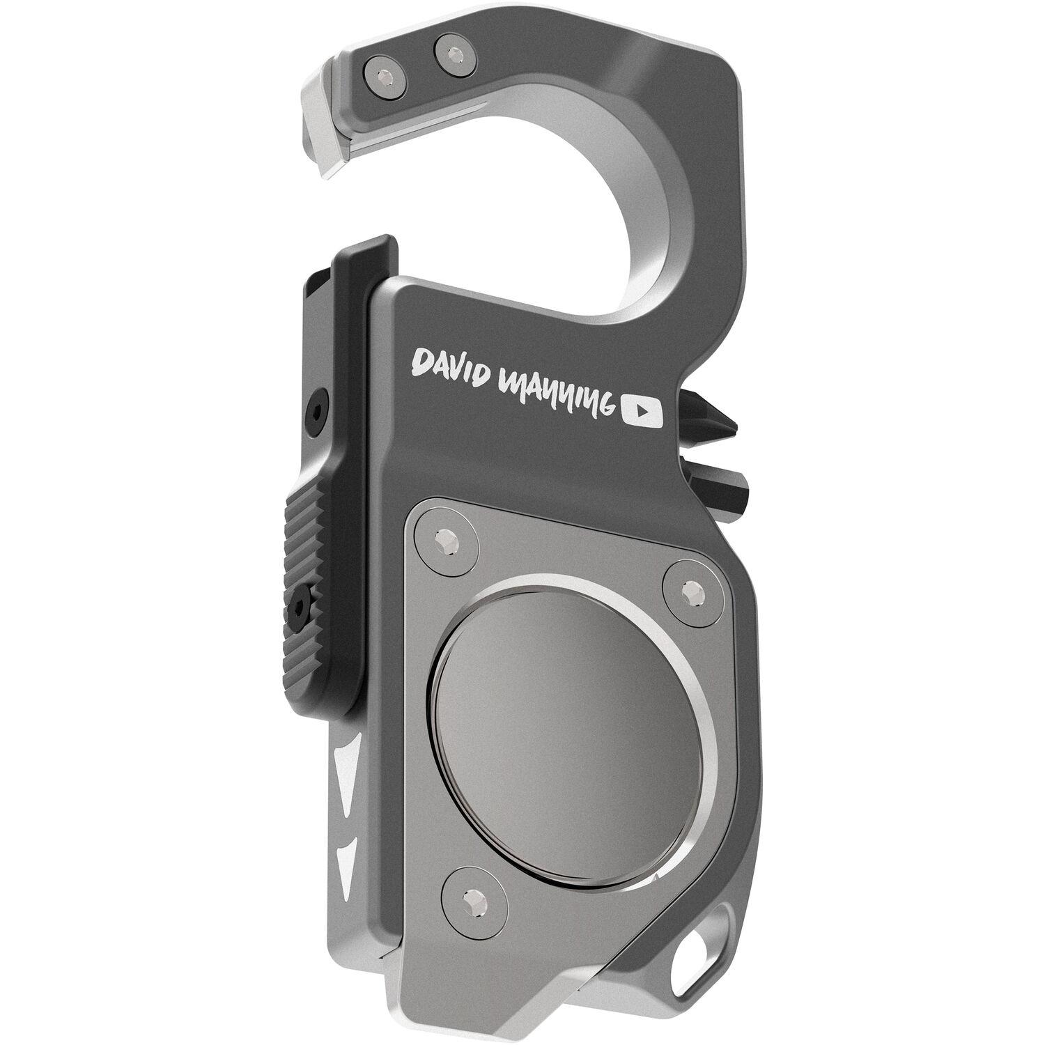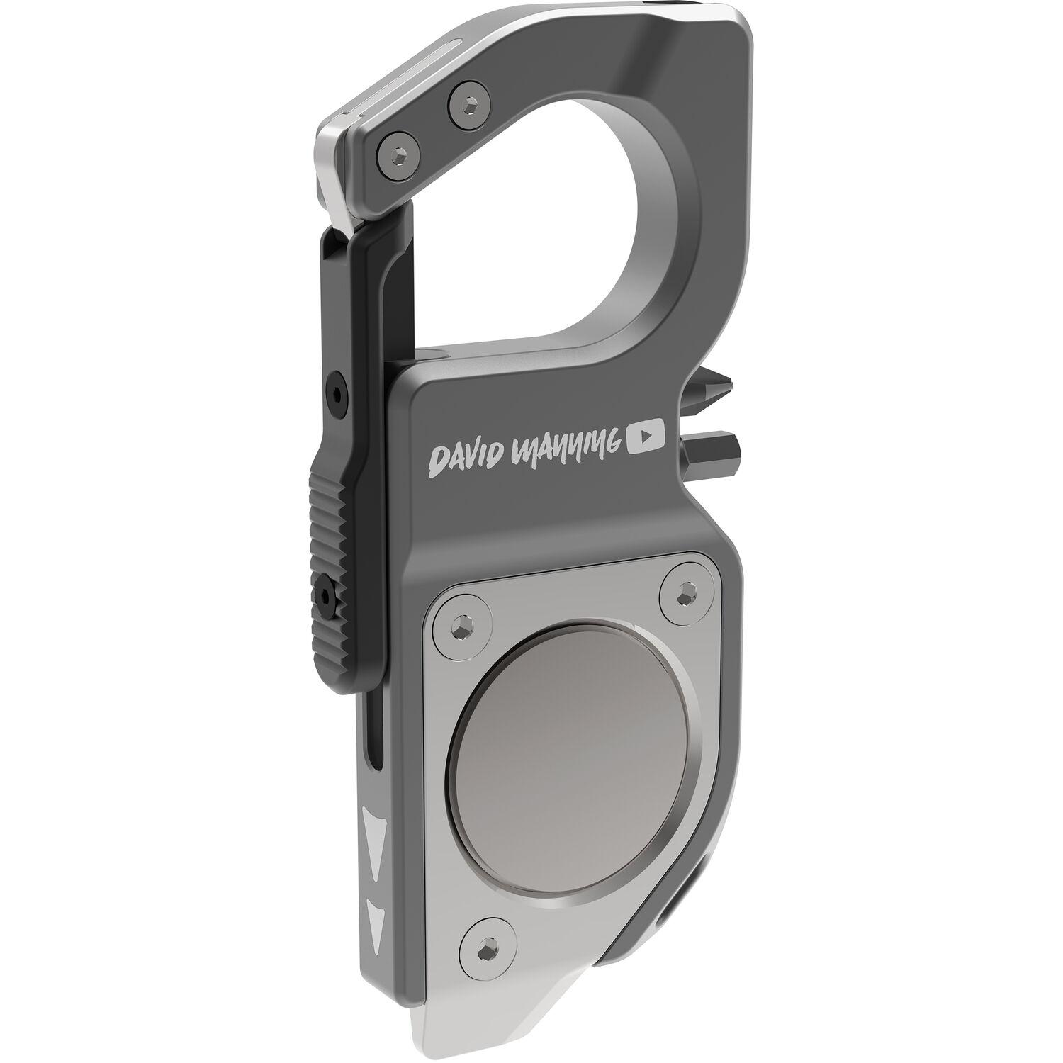 Tighten camera plates on set, assemble furniture, open packages, and more with the David Manning EDC Multi-Tool Clip from Kondor Blue. The multi-tool features two 1" bits, one Phillips bit, and one 4mm Hex key, as well as magnetic storage for two standard 1/4" bits. An integrated flathead screwdriver and box cutter combo tool can help tighten different accessory mounts on set or easily open your next online order. Open a spring-loaded slide gate to reveal a bottle opener and attach the tool to a carabiner or your keys with the built-in key ring slot. You can also slide an Apple AirTag into the AirTag holder and toss the clip into your equipment bag to keep track of your things.