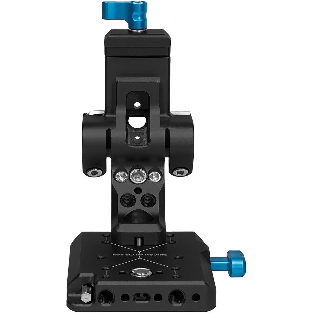 This raven black Director's Monitor V-Mount Kit from Kondor Blue mounts on your monitor via a NATO connection and provides a wide range of accessory mounting options, including a cold shoe, four ARRI mounts, four 1/4"-20 threaded holes, and a dual 15mm rod clamp to keep the monitor tightly secured so that it does not slip due to its own weight. The V-mount kit may be mounted from the top or bottom of the monitor using a separately available NATO rail. The unit's modular design makes it ideal for various types of rigging and accessorizing, and two built-in 3 and 4mm Allen keys are included for making quick adjustments.