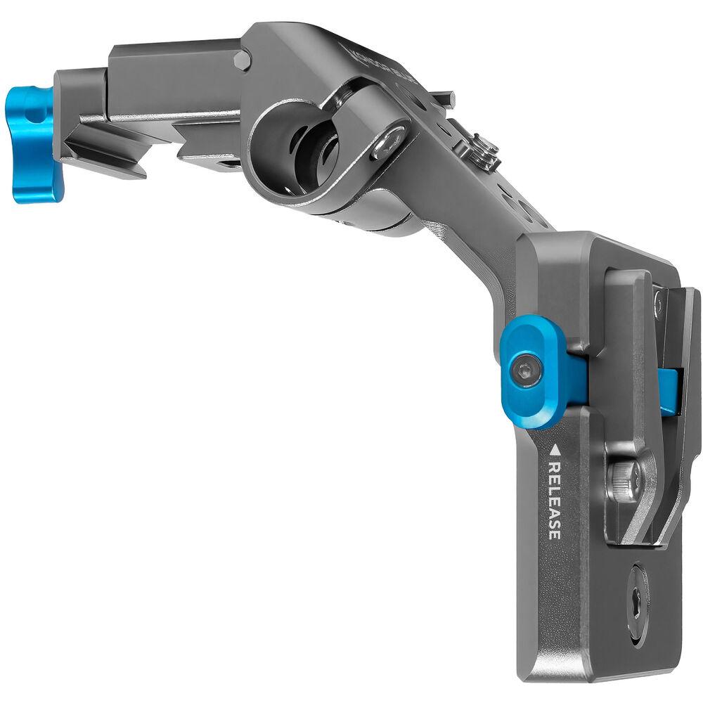 This space gray Director's Monitor V-Mount Kit from Kondor Blue mounts on your monitor via a NATO connection and provides a wide range of accessory mounting options, including a cold shoe, four ARRI mounts, four 1/4"-20 threaded holes, and a dual 15mm rod clamp to keep the monitor tightly secured so that it does not slip due to its own weight. The V-mount kit may be mounted from the top or bottom of the monitor using a separately available NATO rail. The unit's modular design makes it ideal for various types of rigging and accessorizing, and two built-in 3 and 4mm Allen keys are included for making quick adjustments.