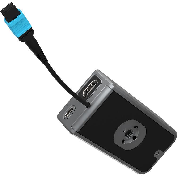 The Fletch Fiber Receiver Module for HDMI from Kondor Blue is a next-generation HDMI and fiber system that converts MPO fiber to HDMI 2.0/2.1 with support for lossless zero-latency transmission over distances up to 1000'. Ideal for field and broadcast use in video village applications or running across long stages and film sets, the Fletch handles resolutions up to 8K60 or 4K120 with a 4:4:4 color space, and it supports HDR10 and Dolby Vision. Encased in a sturdy and rugged enclosure, the unit integrates USB-C and magnetic POGO pin power options.