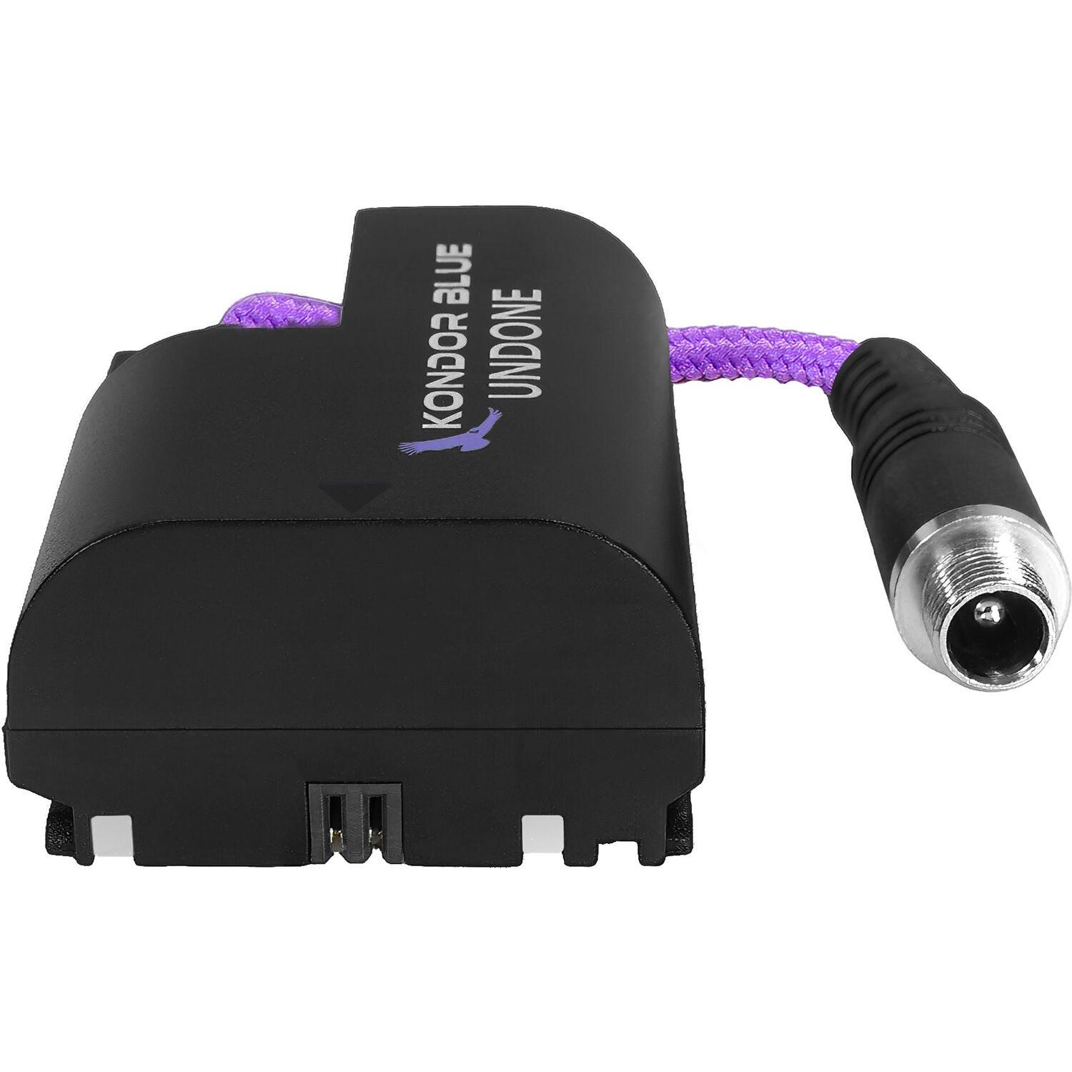 Deliver power from a DC barrel source to a Panasonic camera that accepts DMW-BLK22 batteries with this Gerald Undone Locking DC Barrel to DMW-BLK22 Dummy Battery from Kondor Blue. Featuring a locking 2.1mm DC barrel female connector and a 4" cable wrapped in braided nylon, this dummy battery ensures durability and consistent power delivery. It regulates its 8-17 VDC input to deliver the exact voltage output your camera requires.