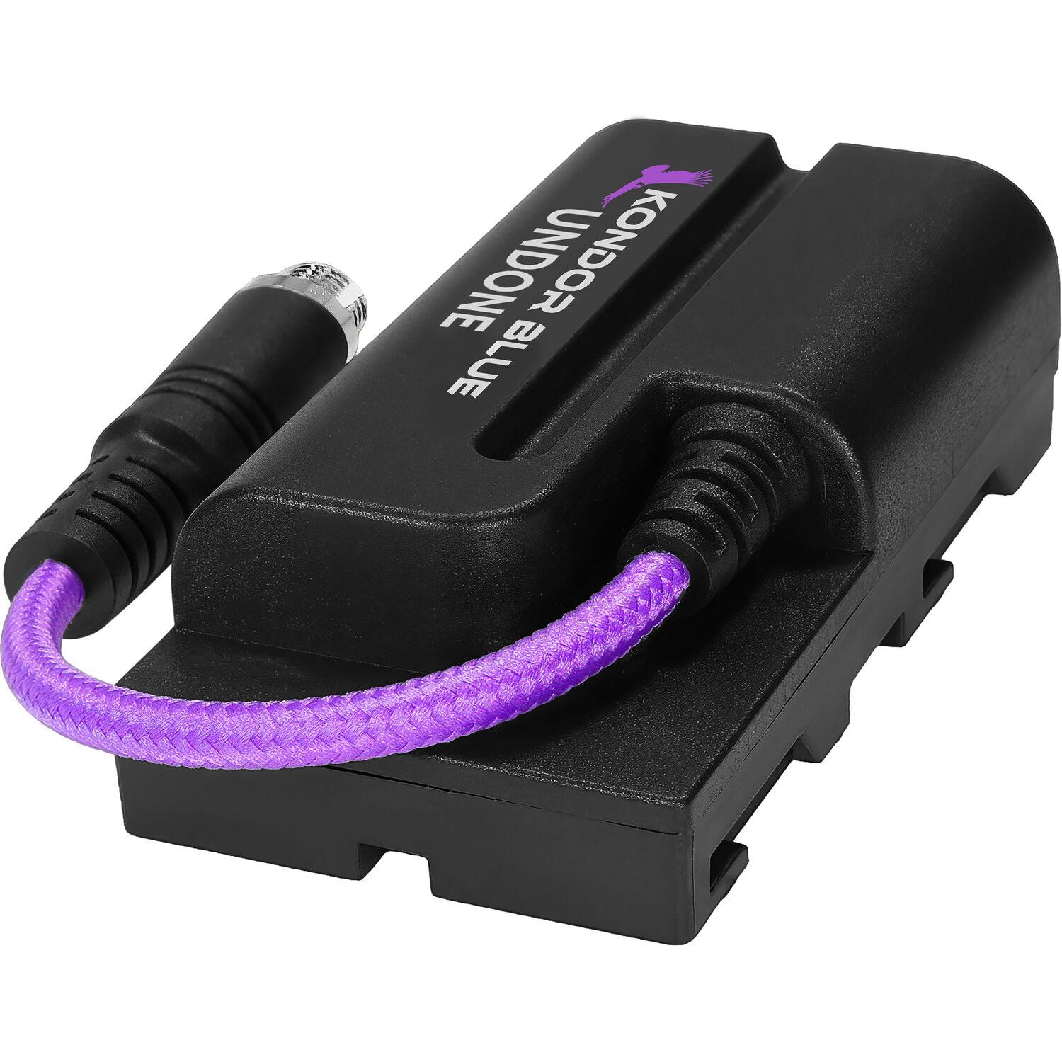 Deliver power from a DC barrel source to a camera or monitor that accepts Sony L-series batteries with this Gerald Undone Locking DC Barrel to NP-F/L-Series Dummy Battery from Kondor Blue. Featuring a locking 2.1mm DC barrel female connector and a 4" cable wrapped in braided nylon, this dummy battery ensures durability and consistent power delivery. It regulates its 8 to 17 VDC input to meet the exact voltage output required by your device.