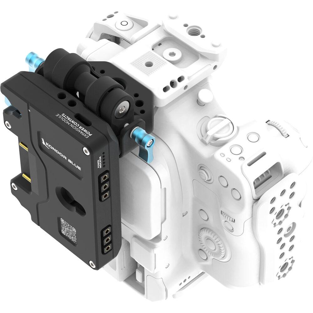 The Top Rod Block from Kondor Blue boasts an ultra-modular design and works seamlessly with the cage for the Canon C80. The compact raven black accessory facilitates the mounting of an optional Kondor Blue Pro Battery Plate.