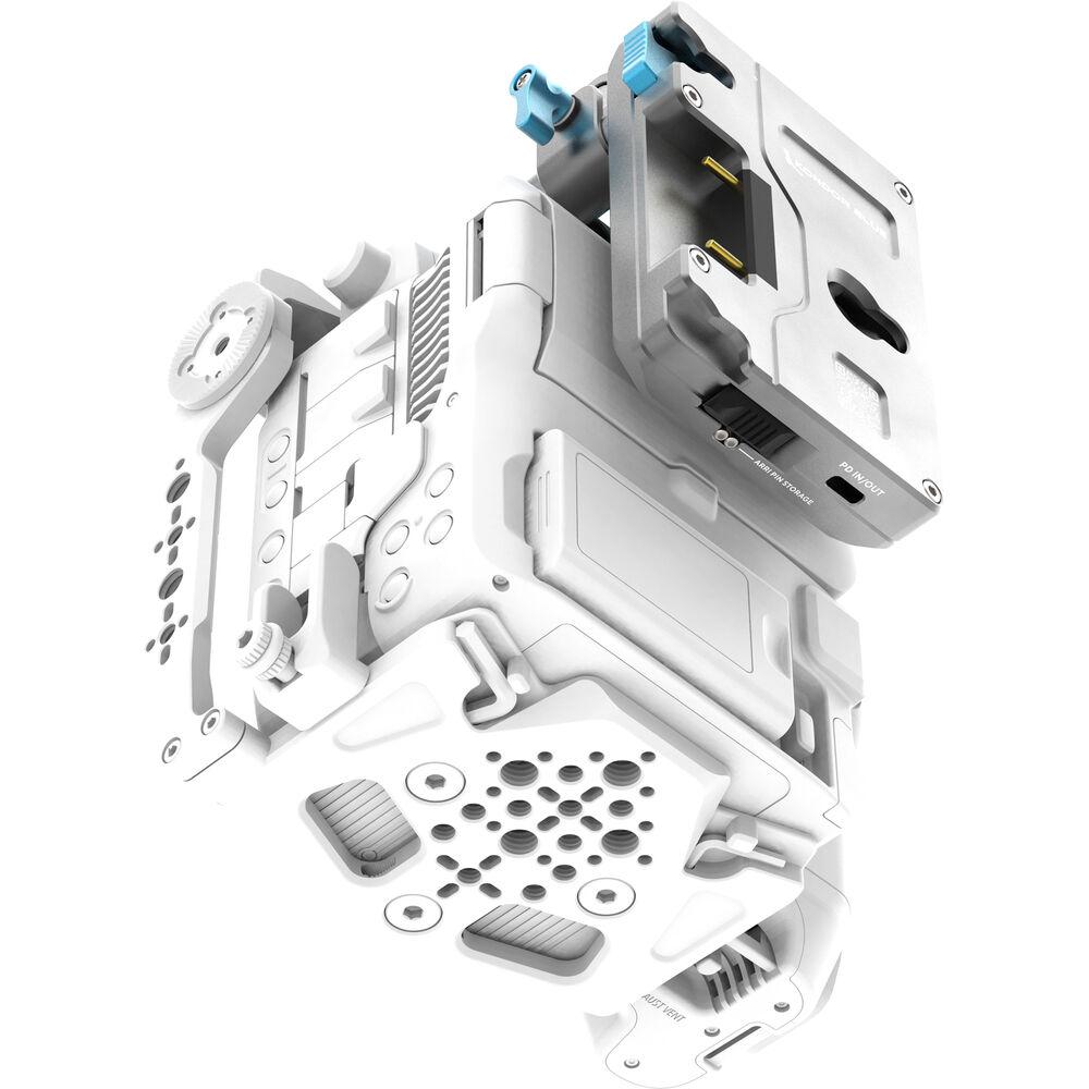 Constructed entirely from machined aluminum, the plate features four ARRI-style anti-twist mounts and additional M4 mounts and can be positioned in eight different ways to best fit your rigging needs. An on/off switch with a magnetic cover and an LED power indicator are both integrated into the design, and the Gold mount plate has been downsized to better match the increasingly popular micro-sized batteries.