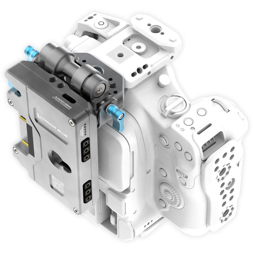 The Top Rod Block from Kondor Blue boasts an ultra-modular design and works seamlessly with the cage for the Canon C80. The compact space gray accessory facilitates the mounting of an optional Kondor Blue Pro Battery Plate.