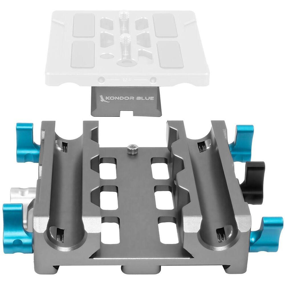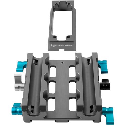 Add 15mm LWS to an optional quick release support of your choice on your professional camera rig with this space gray LWS ARRI Bridge Plate from Kondor Blue. This item is for the bridge plate only, which is designed to work with ARRI-standard dovetail rigs and can support larger pro cameras from ARRI and RED and camera models such as the Blackmagic Design URSA Mini line, Canon EOS C70, and the Sony FX6, Rialto, FS5, F5, and VENICE. It features an ARRI-standard dovetail base and industry-standard 15mm LWS rod clamps, and it supports a variety of optional Kondor Blue quick release camera plates.