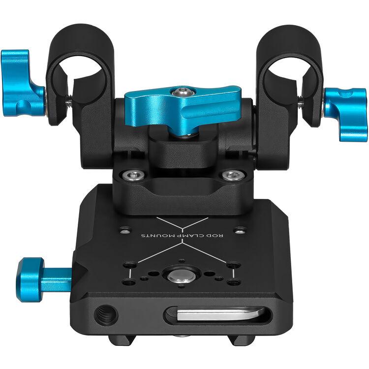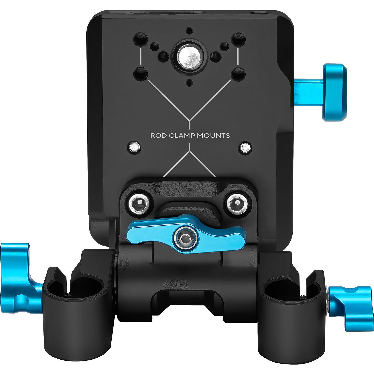 Operating on a 19mm rod, the plate offers pivot functionality, allowing users to adjust tension according to preference or completely lock it off. Each element undergoes precision machining from aerospace-grade aluminum and stainless steel, ensuring durability and guaranteeing that you can confidently place the kit down without any concern for accidental dislodging of your V-mount battery.