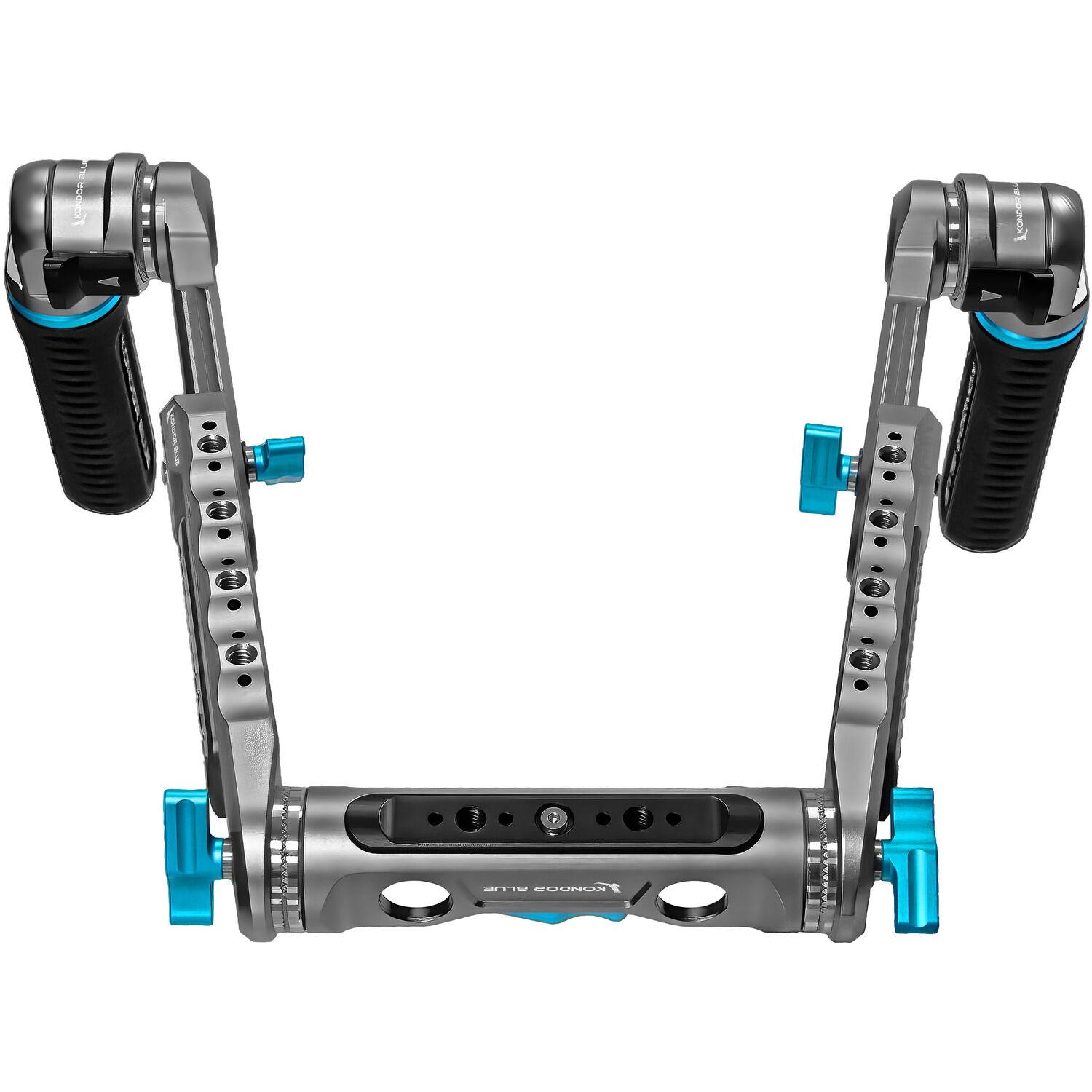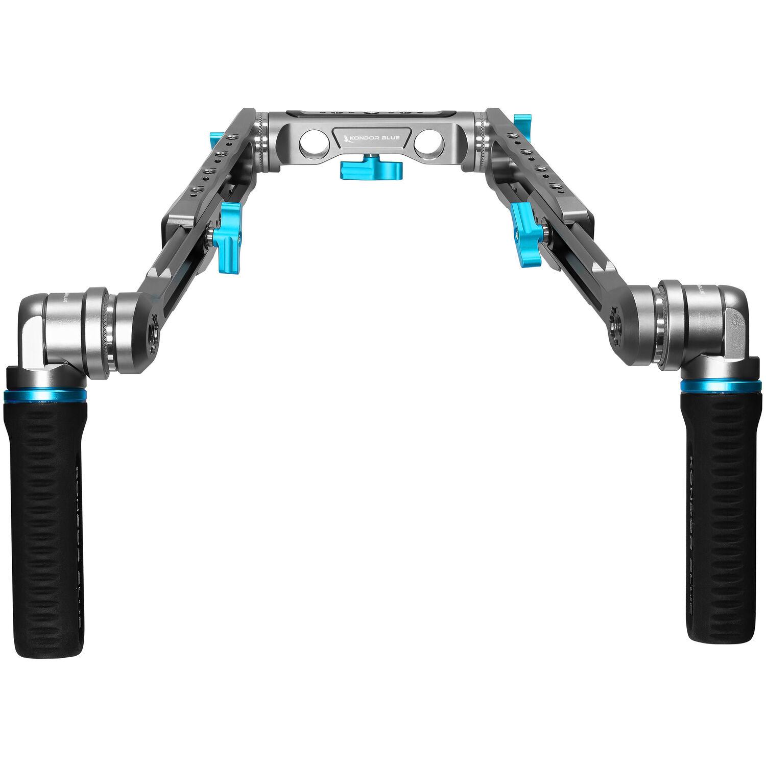 This space gray Pro Pivot Arms & Grips Bundle from Kondor Blue has been fully redesigned to favor left and right compatibility. Designed for use with various rosette-compatible accessories, the integrated 60-tooth ARRI-style rosette features an M6 bolt for broad compatibility with any standard grip or arm. The lightweight 3 oz pivot module boasts 30 adjustment positions with an improved mechanism that employs two stainless steel pins for better strength and overall mounting safety. The quick release mechanism offers minimal play, with the ergonomic rubber grip providing a comfortable handle.