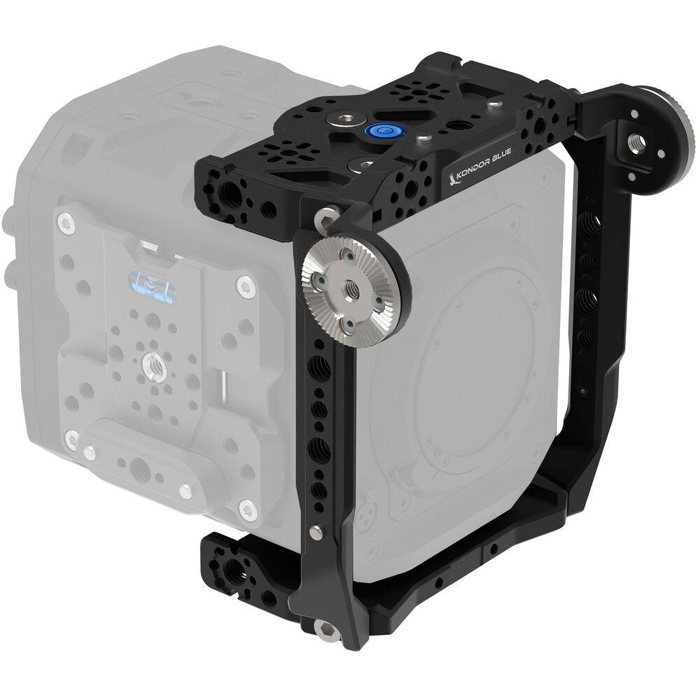 This raven black PYXIS Cage System A Kit from Kondor Blue is a feature-packed modular cage system designed for the Blackmagic PYXIS box camera. The versatile cage kit comes with one top half plate, one bottom half plate, and both left and right rosette ribs.