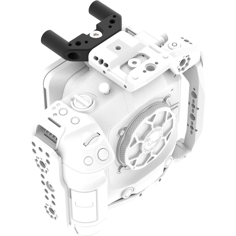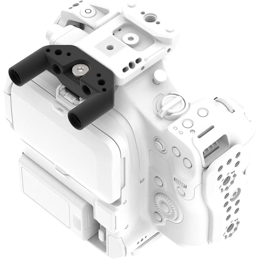 The Top Rod Block from Kondor Blue boasts an ultra-modular design and works seamlessly with the cage for the Canon C80. The compact raven black accessory facilitates the mounting of an optional Kondor Blue Pro Battery Plate.
