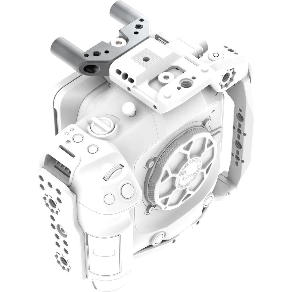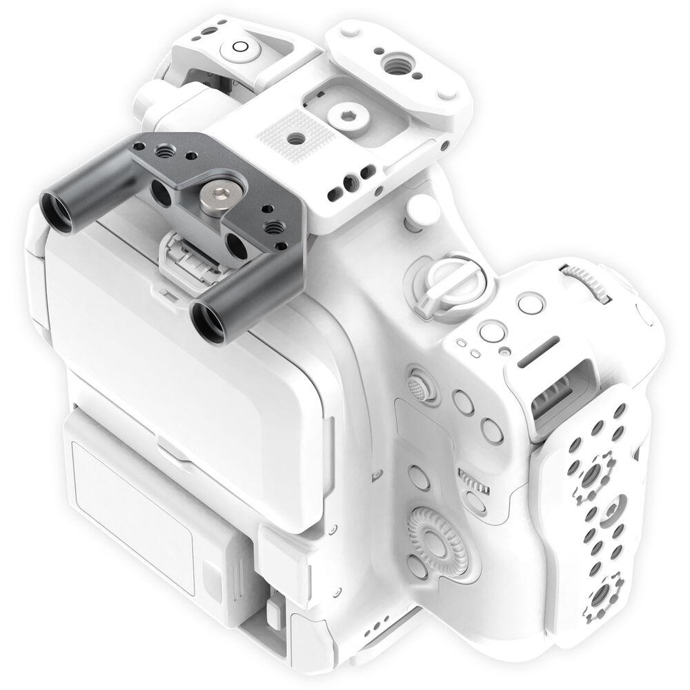 The Top Rod Block from Kondor Blue boasts an ultra-modular design and works seamlessly with the cage for the Canon C80. The compact space gray accessory facilitates the mounting of an optional Kondor Blue Pro Battery Plate.