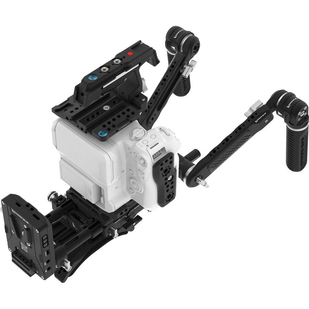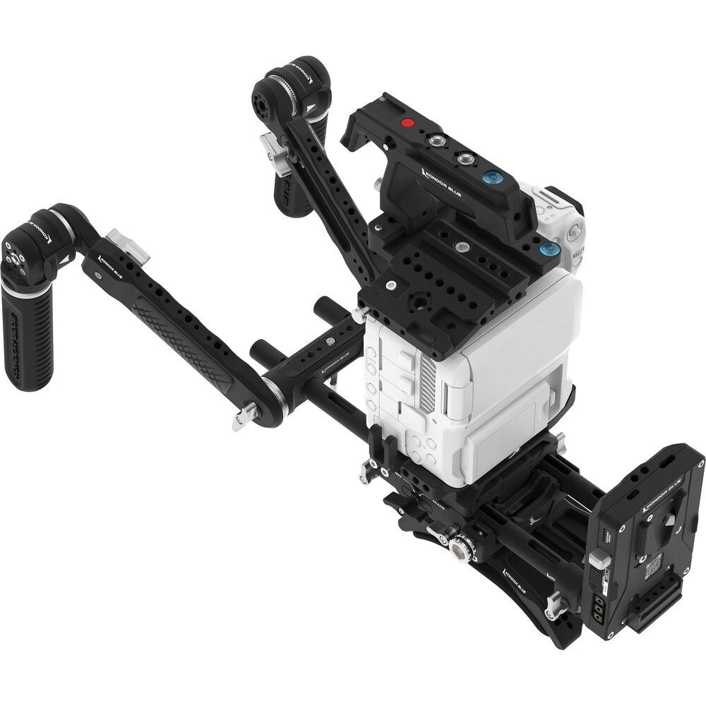 Add shoulder support, protection, power, accessory mounting, and a battery plate to your Canon EOS C70 camera with this Ultimate Rig MKII from Kondor Blue. This rig features a modular camera cage with a top handle, an ARRI-style baseplate, a Shoulder Pad Air MKII, a set of extension handgrips, a V-mount battery plate, a pair of 12" 15mm rods, and a 15" D-Tap power cable. The included top trigger handle features multiple mounting options and a start/stop button that connects to the camera with a separately available LANC cable. Read more about these kit components below.