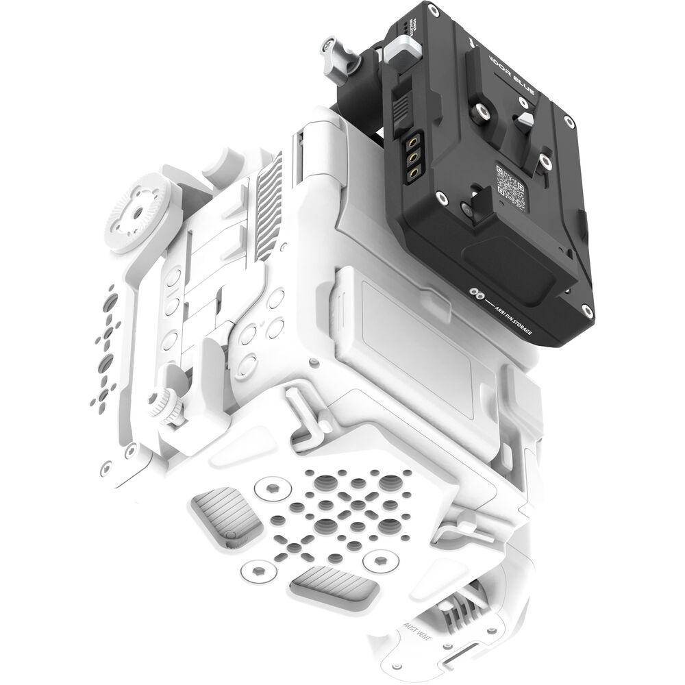 Constructed entirely from machined aluminum, the plate features four ARRI-style anti-twist mounts and additional M4 mounts and can be positioned in eight different ways to best fit your rigging needs. An on/off switch with a magnetic cover and an LED power indicator are both integrated into the design, and the V-mount plate has been downsized to better match the increasingly popular micro-sized batteries.