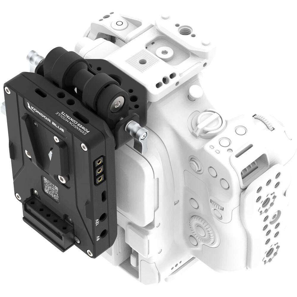 The Top Rod Block from Kondor Blue boasts an ultra-modular design and works seamlessly with the cage for the Canon C80. The compact raven black accessory facilitates the mounting of an optional Kondor Blue Pro Battery Plate.