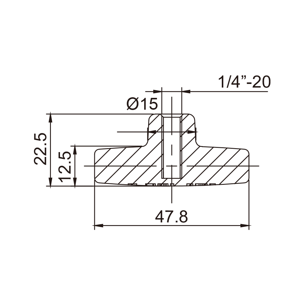 1/4"-20 female threaded t-knob is made by solid die-casting aluminum comes with 20mm hole depth and 47.8mm head length.