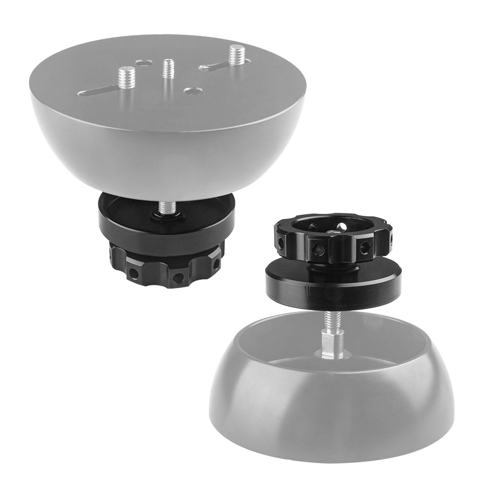 The aluminum machined tie down features a Dia.79.8mm washer & M10 knob that allows you to secure a camera onto a 75, 100 or 150mm ball adapter. The special designed octagonal shape knob with tighten tool hole for easy and safe camera mount.