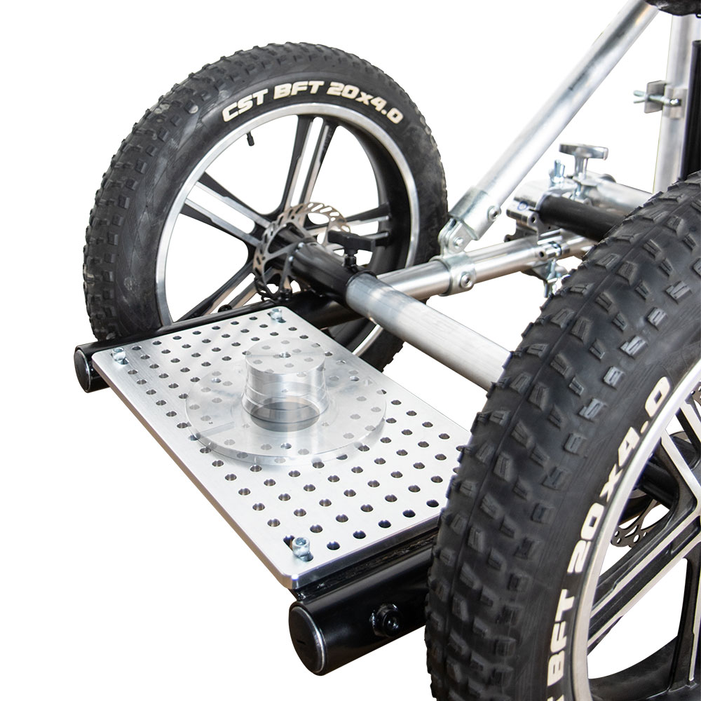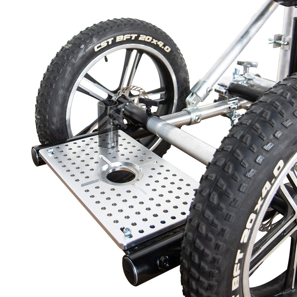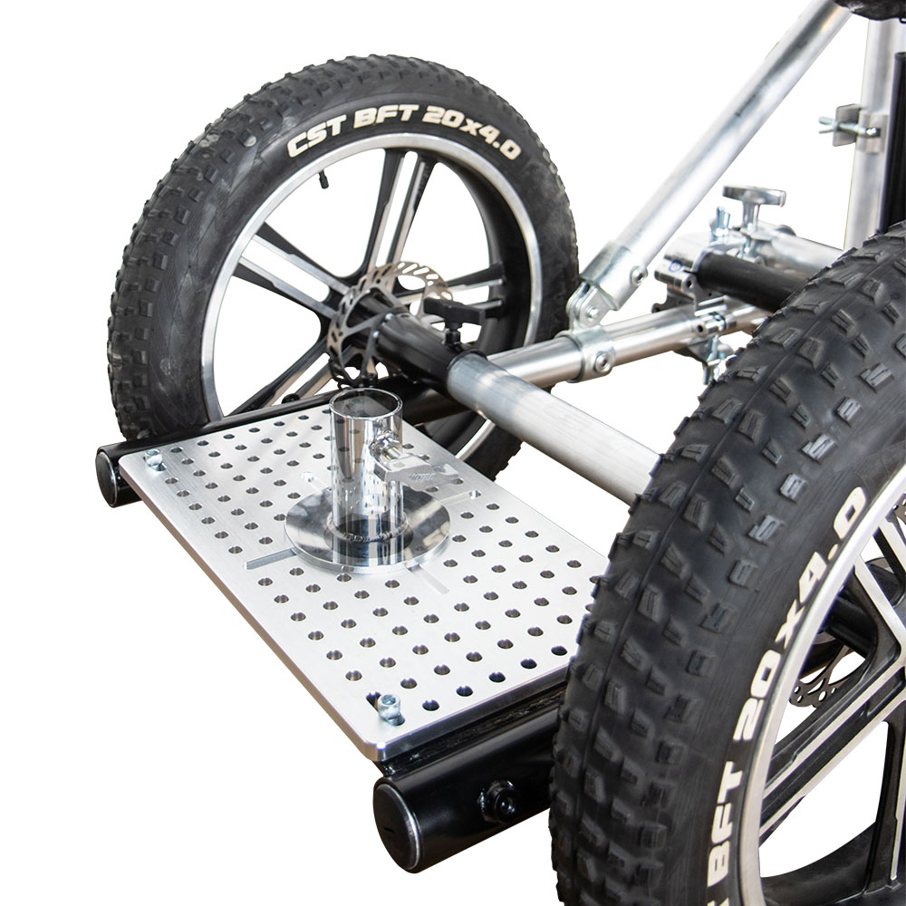This CNC aluminum Cheese plate is specially designed to rest your feet for a Rickshaw Dolly. The plate comes with industry standard 3/8” holes, space every 1” and a Mitchell center that allowing the filmmakers to build Michell mount setup on Rickshaw Dolly easier.