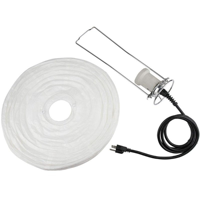 The Kupo 18" china ball bracket withe 40 socket, or chinese paper lantern consists of a paper globe witha ceramic e40, also known as a "mogul" socket and a chrome plated 3/16" wire frame to support it. The china ball gives soft omnidirectional light. Under the socket the re is a metal disc withboth female 1/4"-20 and 3/8"-16 threaded holes for easy mounting. Attached to the metal disc is a metal ring to clip on fabric or gels to control the direction, color and quality of light. The cable is reinforced where it enters the socket for long life.