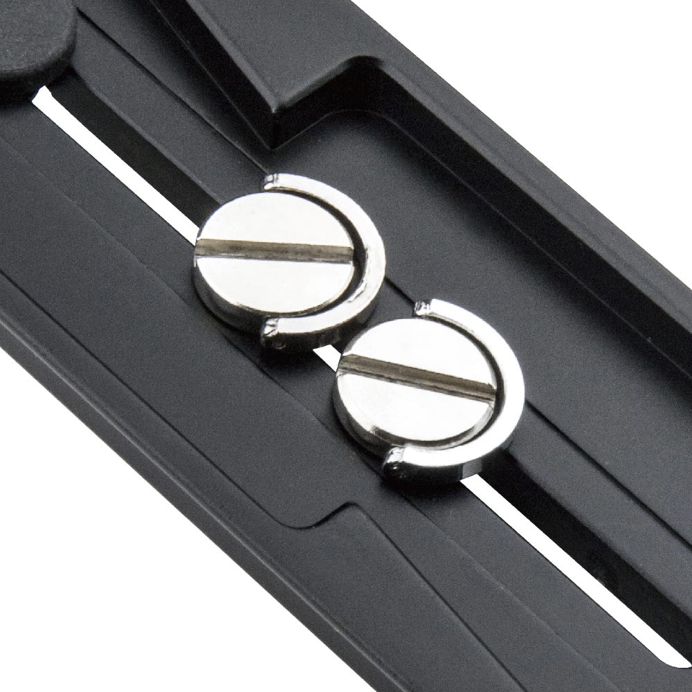 3.54”(9cm) long quick release plate is an aluminum camera plate which is compatible with manfrotto 501pl systems. The plate is equipped with 1/4”-20, 3/8”-16 camera screws and a little slotted catch that prevents the plate from falling off.