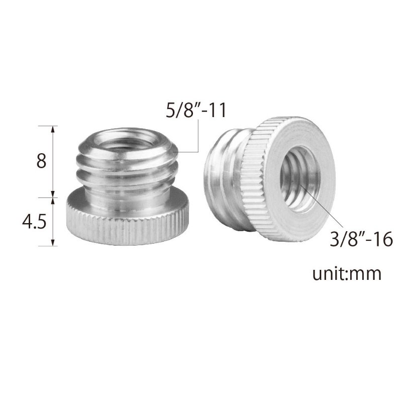 - 3/8”-16 female thread to 5/8"-11 male thread adapter