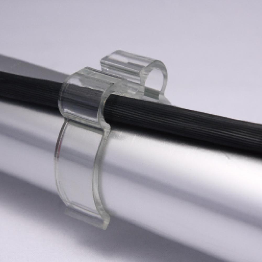 The setranslucent flexible plastic clips are designed to secure cables on round tubing. Just snap a few around your light stand , boom or any other tubing and you can run your cables neatly in seconds. The se clips accommodate tubing 1.6 - 2.0" (40-50mm) in diameter and come in a pack of four.