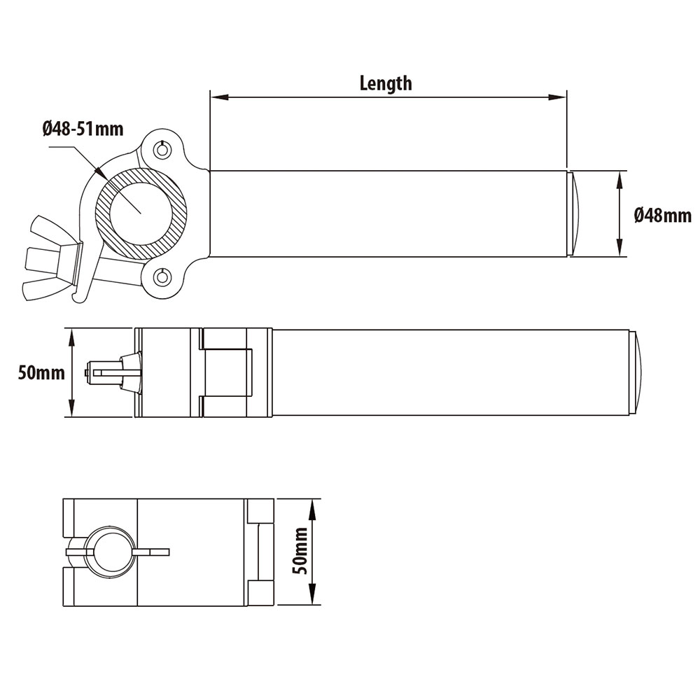 Arm coupler is firmly welded with 48mm (1.89") aluminum alloy tube (length 500mm), creating an extension and flexible rigging point for lighting fixture. Max safety working load is 40kg (88lbs). Feasible for tube diameter 48-51mm (1.89"~2.0") . Suitable for Stage, Theatre, Film, and Studio.