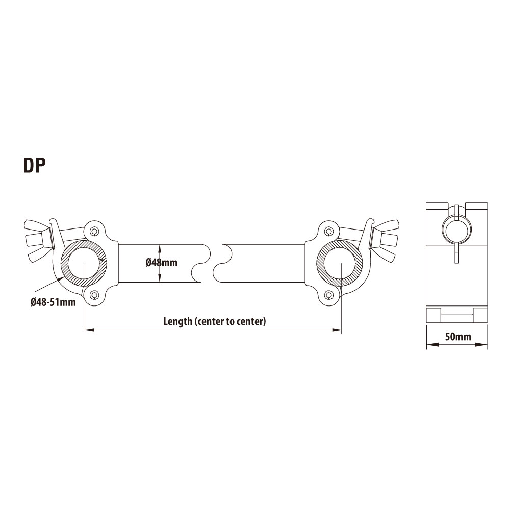 Pipe-to-pipe coupler offers a firm connection between two parallel tubes (central length 500mm) for tube diameter 48-51mm (1.89"~2.0"), and available in polish finish.