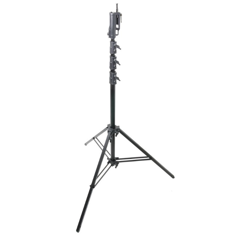 The big brother of the 542MB Master Cine Stand, the 543MB Master Cine Stand gives you the ultimate combination of strength and features. The solid steel construction has a maximum load capacity of40 Kg. The 543MB also features the triple function universal combo head with both 1-1/8" (28mm) and 5/8" (16mm) receivers plus a multi-direction 5/8" (16mm) stud to accept any kind of mounting challenge. The 543MB features a leveling leg that enables the user to extend one leg more than the others to level out the stand on an incline or uneven terrain. It also comes in handy on some stairs! Whether you are mounting a boom, large HMI or a green screen, this cine stand can support just about anything high above the ground. Due to the increased height, this light stand features a slightly larger footprint diameter and weighs just 1 Kg more.