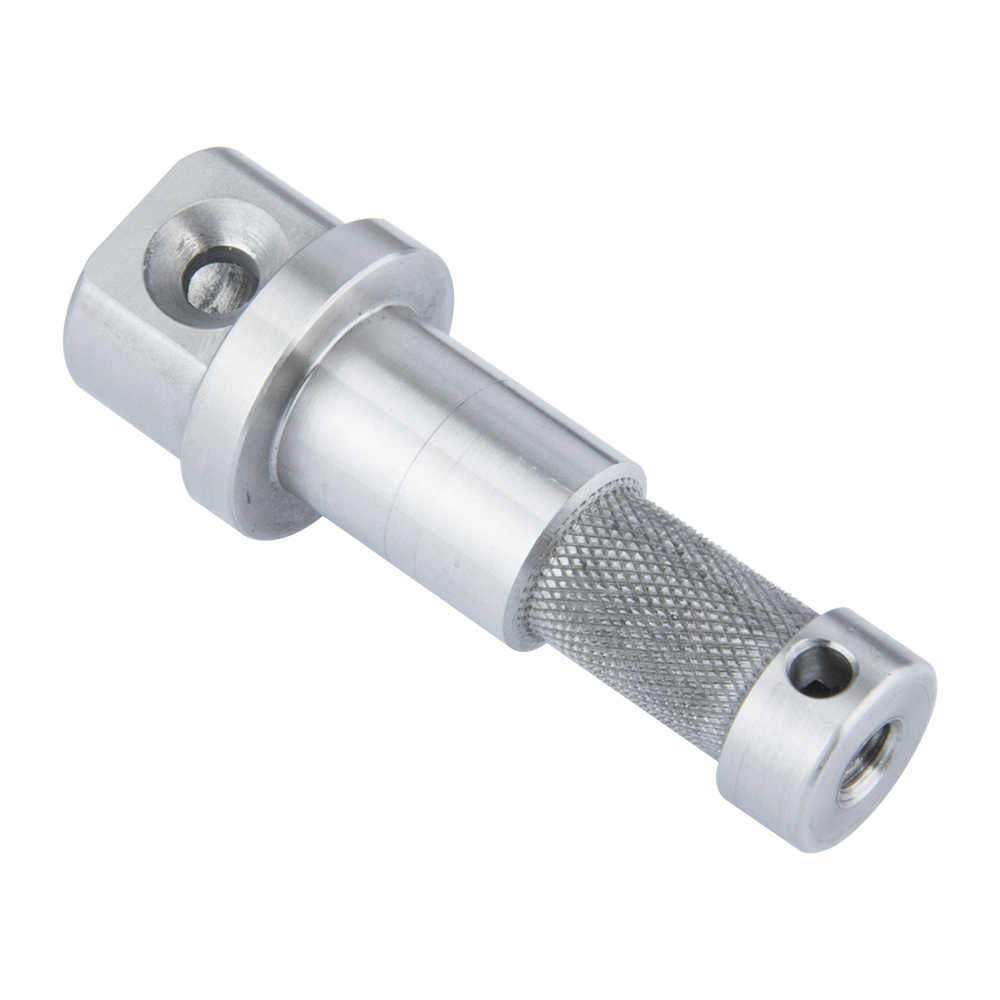 Interchangeable stainless steel 5/8”(16mm) stud for rockʼs arm with female 1/4”-20 threads on to top can be mounted on each end of the arm to make it compatible with the equipment that comes with 5/8”(16mm) socket.
