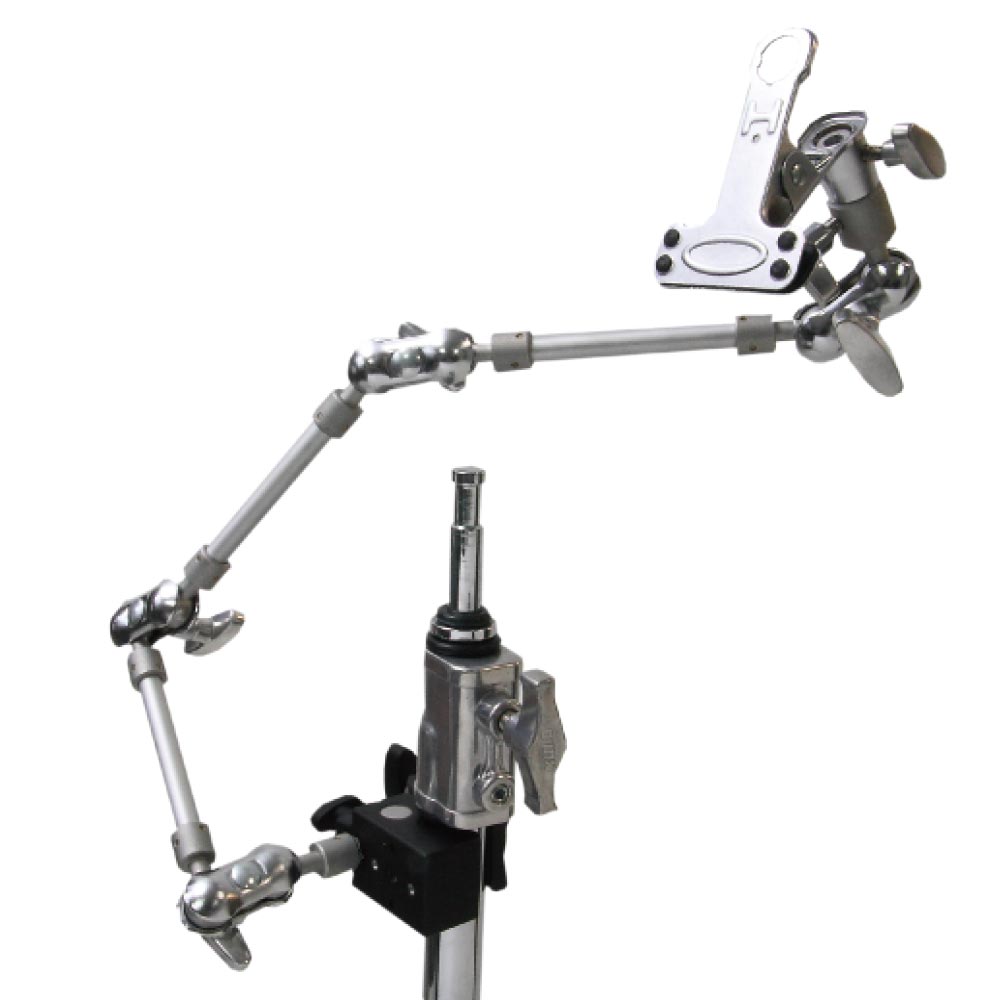 The articulated arm is used to lock and hold small lighting and effects in accurate position. The end socket is a 5/8" baby pin on the outside which can hold a small lighting fixture. The inside is a 3/8"-16 thread which will accept the standard dot and camera accessories. Weight: 0.86kg (1.90lbs)