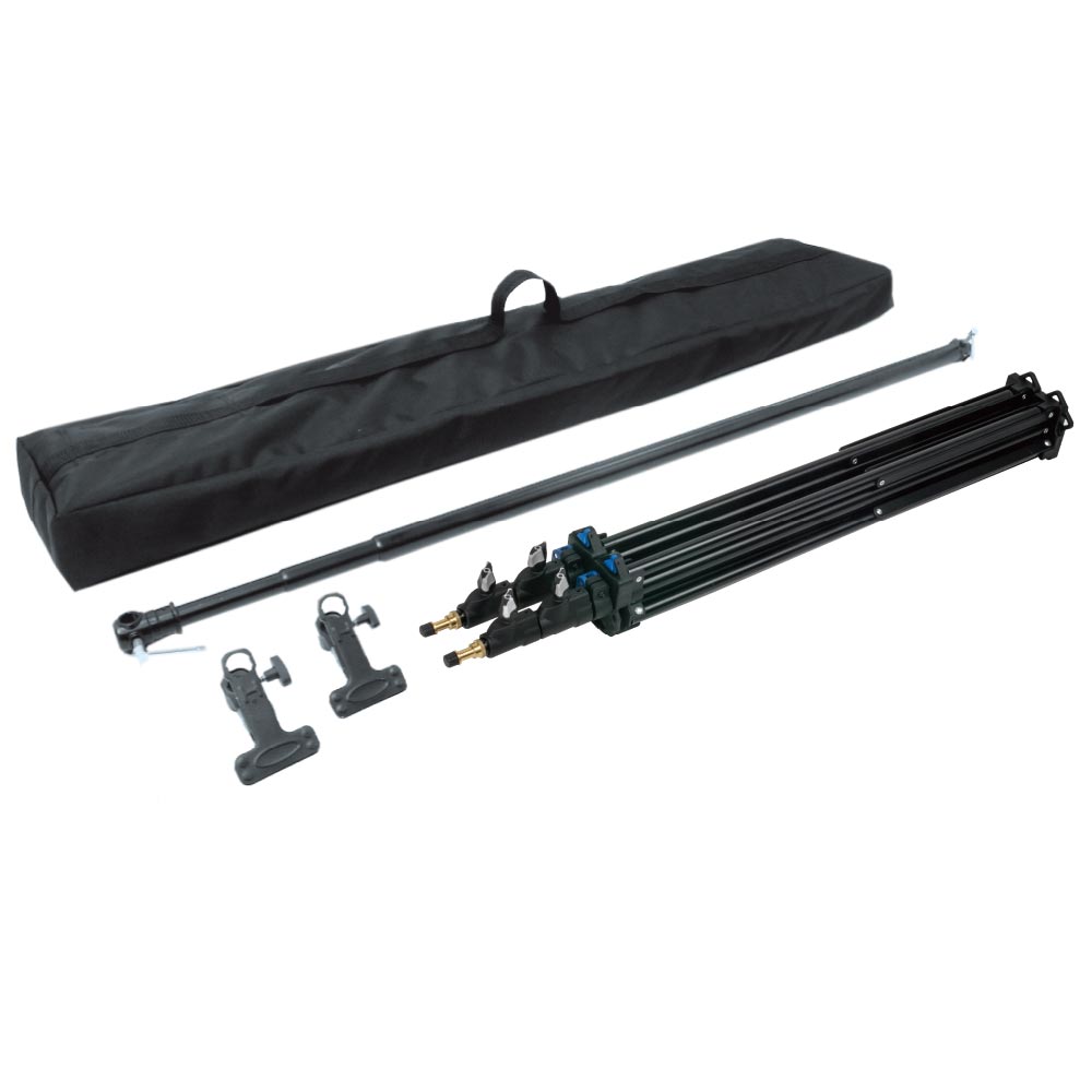 - With Telescopic Cross Pole (123B)*1, 8 Feet Click Stand (080AC)*2, Black Mini Spring Steel Clip(KCP-350B)*2, Carry Bag