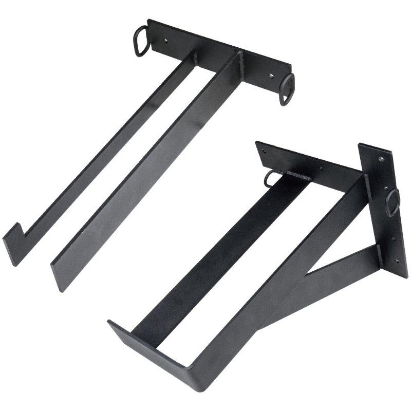 Made of solid steel and strong enough to hold up to 6 C-stands withgrip heads and arms attached to a wall or truck door. The hoops are designed to fasten bungee cords around and keep stands securely in place in the rack.