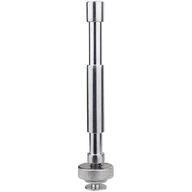 Made of high-strength aluminum alloy, it features a 16mm male head with a length of 15cm and a camera cold shoe adapter below. The 15cm length allows for sufficient space to connect extension poles between two flag heads (spigots), serving as a stable extension support for cameras during car shooting. It can be used in conjunction with other KUPO products such as the flag pole joint (KCP-290B). The cold shoe mount has a textured knob for easy attachment to the cold shoe.