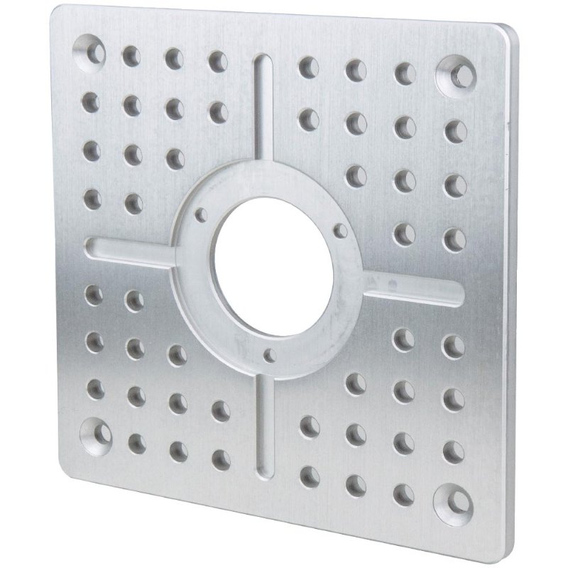 Features a mitchell center allowing for mounting cameras withmitchell base tripod heads. Constructed from a cnc aluminum, this plate is used as a multipurpose utility bracket for various film related accessories. Designed for mounting accessories to cameras, monitors and lighting. It comes withthe industry standard 3/8in holes, spaced every 1in. The four corners are counter-sunk 82 degrees on one side.