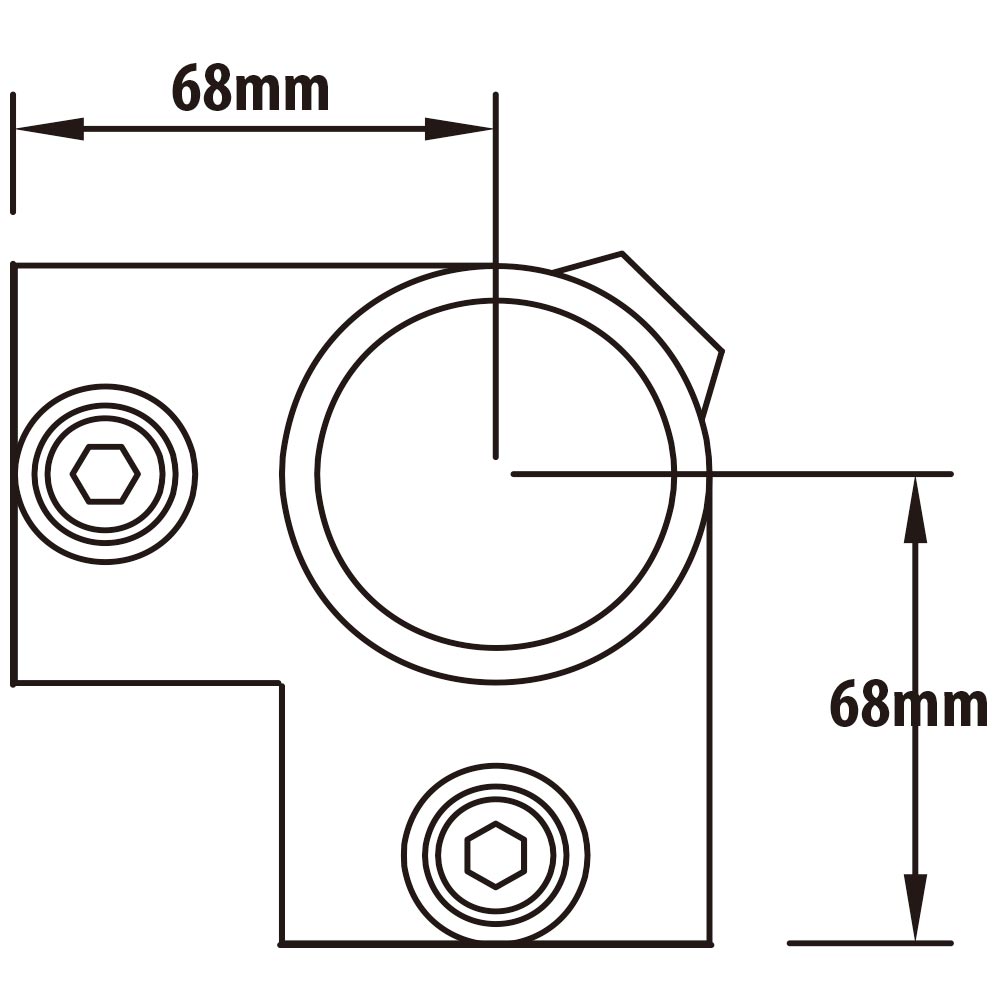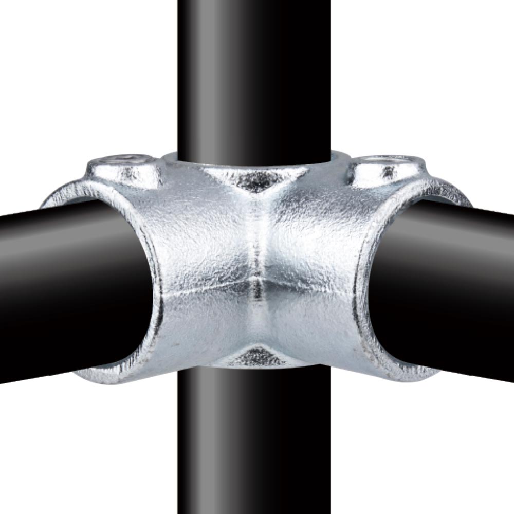 The KUPO Three-way Corner Type Circular Pipe Connector (KPC-116) is used for connecting a vertical pipe with two horizontal pipes at a 90-degree angle, suitable for building square or rectangular structures. It is made of cast iron in accordance with international standard ASTM A197 and treated with hot-dip galvanizing to effectively prevent rust and wear. The size of the connector from the center of the circular pipe to the edge is 68mm, and it can be quickly and tightly connected with an outer diameter of 48.3mm circular pipe using internal hexagonal screws. There is no need for additional welding, making it the best choice for both indoor and outdoor construction.