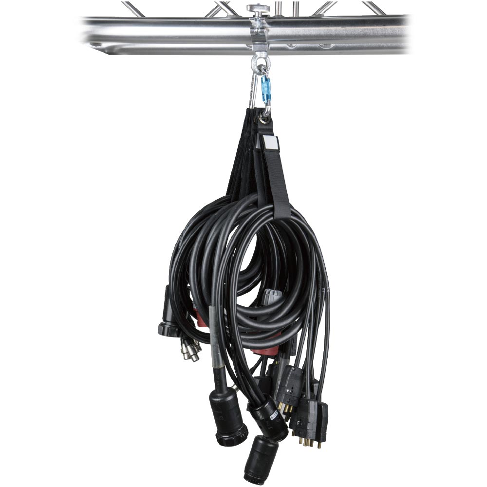 Mounted with large metal eyelet, this cable holder is fabricated with sturdy Nylon loop and hook with excellent holding strength for handling heavy weight. Help to keep cables in place and well-organized. With carabiner and additional clamp, cables can be attached on the truss, tube or pipe without much effort. Handy write-on area leaves for custom identification and labeling. Maximum cable bundle diameter 10cm. Pack for 5 with twist locking alumimium carabiner