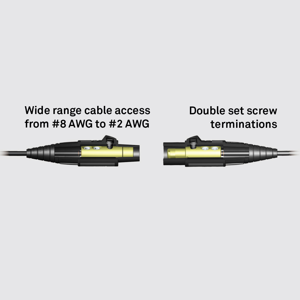 - Wider range of cable accommodation from #8 AWG to #2 AWG