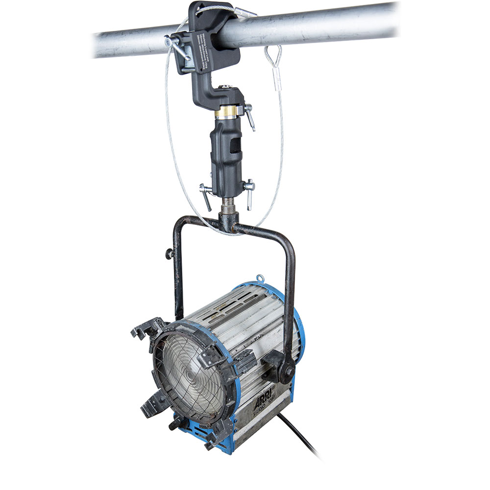 Manufactured from rugged gravity cast aluminum, the Kupo swiveling pipe c clamp works for pipe diameters from 28 to 78mm with load capacity 15kg (33lbs) or for 16mm attachment and 80kg (176lbs). The swivel device allows a pan adjustment of the fixture with ease and convenience. And the safety wire is built with the clamp to ensure this essential safety aid is always on hand.