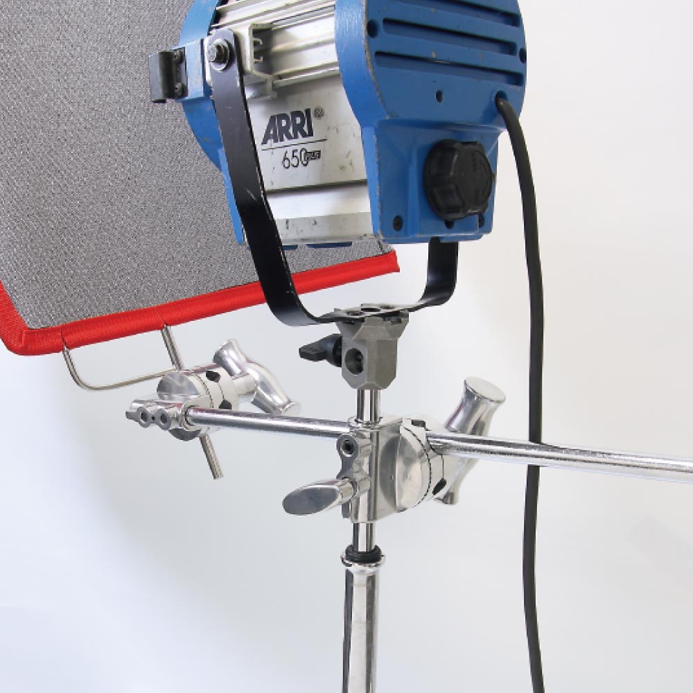 KUPO Grip Head (also Gobohead) is specially designed to be mounted on C-stand with its 16mm socket. Four different size and rotatable V jaw allows you to attach the scrims, flags, cutters, reflectors and backdrops to meet various requirements of lighting control.