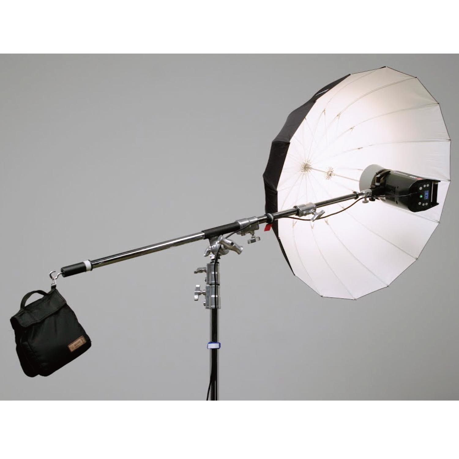 This boom arm can be used to position reflectors, flash heads, screams, tungsten lights and muslin backdrops. A chrome steel boom with 5/8” baby stud, telescopes from 3’8“- 7’8” [ 1.24M - 2.17M (48.8“ - 85.4”) ] and supports upto 11lbs (5KG) when fully extended. The heavy duty tilt locking device is designed to cooperate with standard grip head to provide a tightly lock ability and it allows the boom to slide within it to adjust the balance of your load. The hook end allows hanging a sandbag for added support.