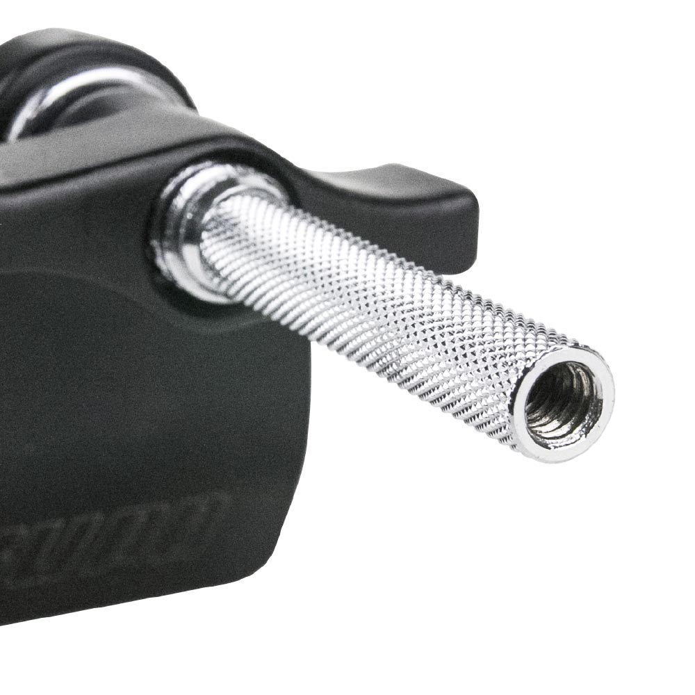The Kupo Mini Viser Clamp features a 1/4"-20 thread female on the dia. 3/8”(10mm) knurled steel rod and a 3/8"-16 male stud on the bottom of the jaw for connecting with a variety of lighting and video accessories. Ideal for a small backlight, to help hold a portable