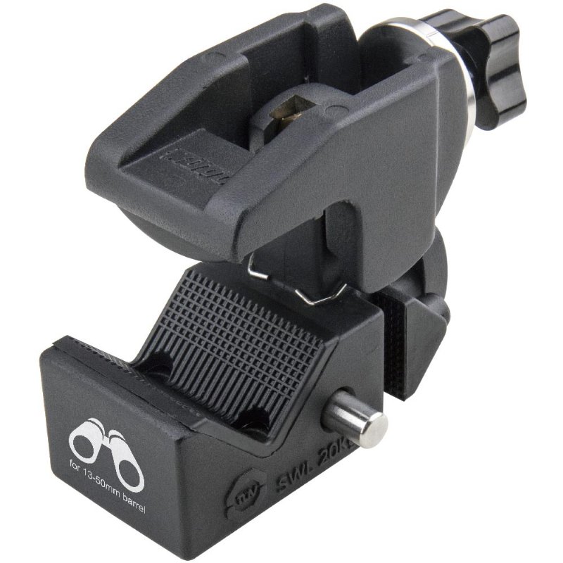 Ideal mounting solution for keeping your binoculars in place on any tripod head or fluid head. It features an unique large serration design that keeps your binocular from slipping, and the 1/4''-20 thread female under the clamp is used for mounting on any tripod head or fluid head.