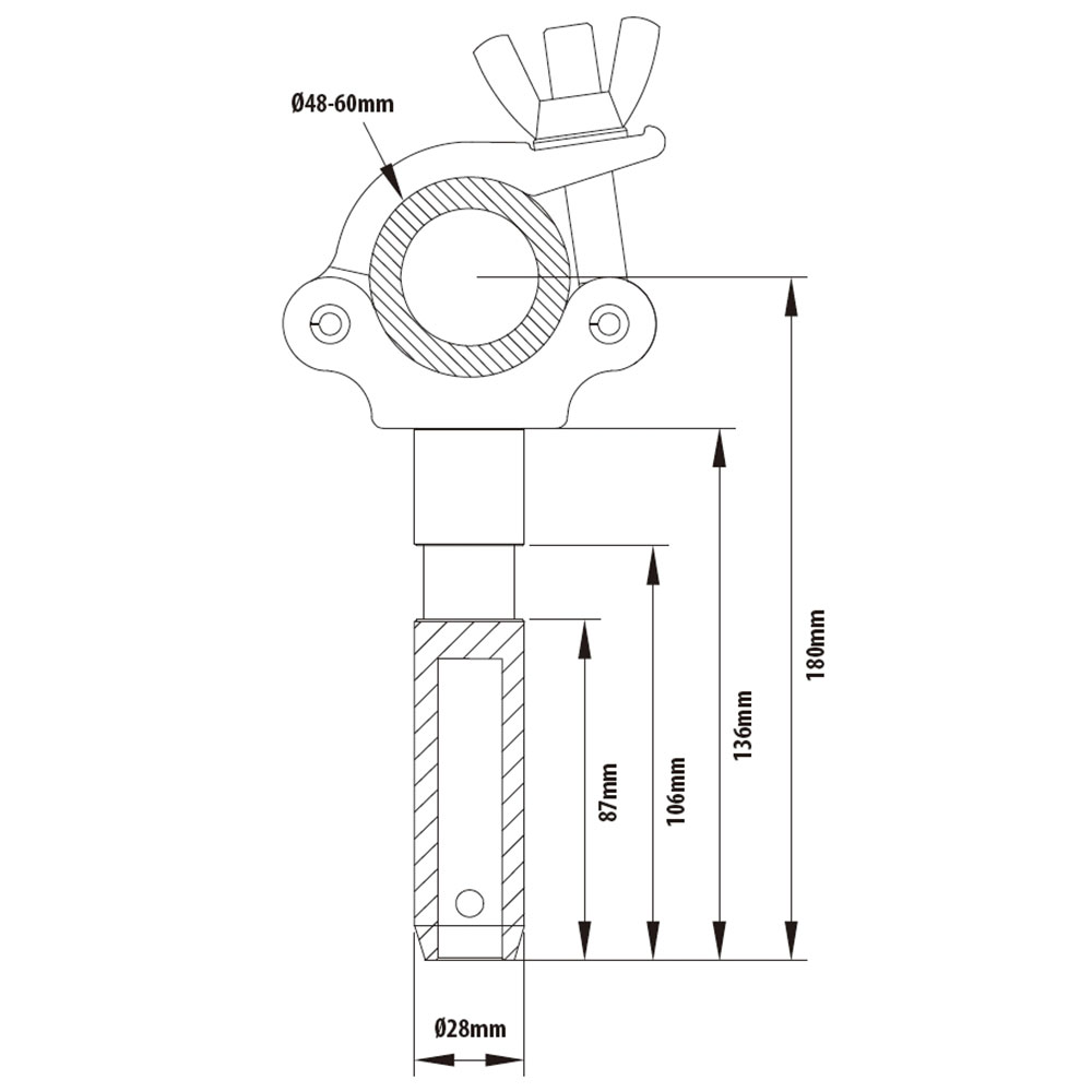 - 28mm (1-1/8") TV spigot can be mounted into a combo stand to span between two stand as a goal post rig