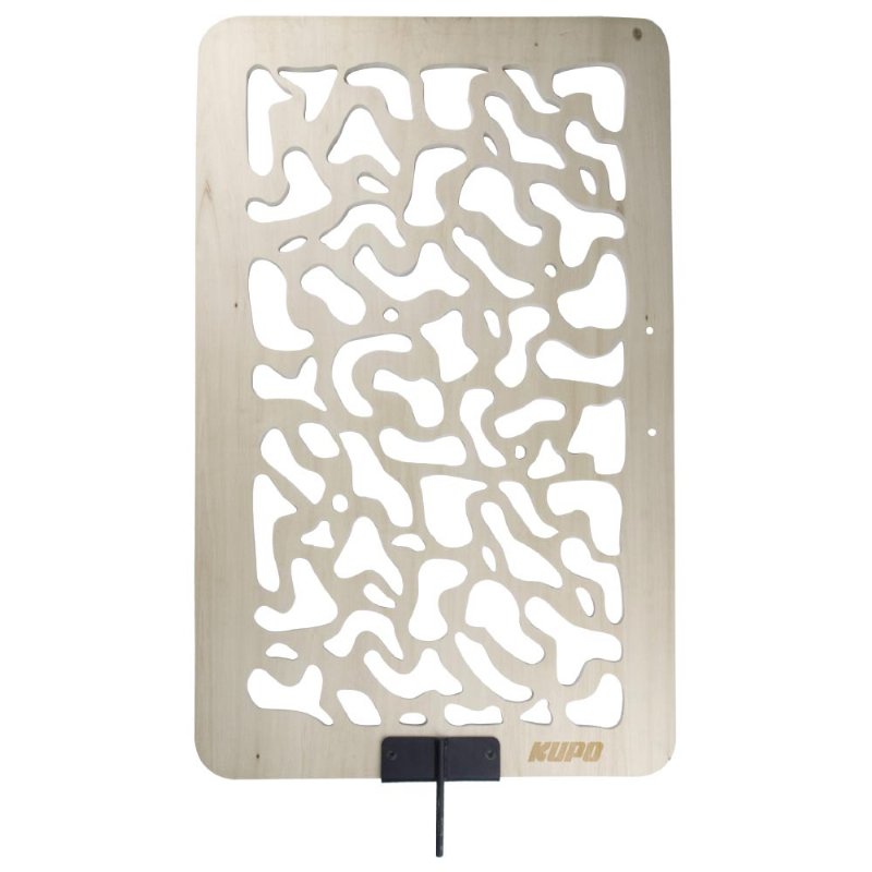 A cuculoris, shortened to cookie, is used to create a more natural look by breaking up the light from a man made source. It can be used to simulate movement by passing shadows or light coming through a leafy canopy. Kupo wood cookie are made by 10mm thickness high quality plywood that built to long lasting operating. The U-shaped metal cookie holder with 10mm pin is equipped offers an easy combination method for the cookie with light stand through a grip head.