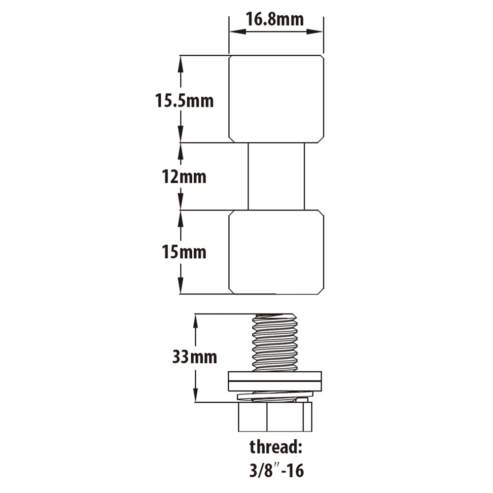Ø17mm spigot (dabo), female threaded with 3/8”-16 bolt & washer
