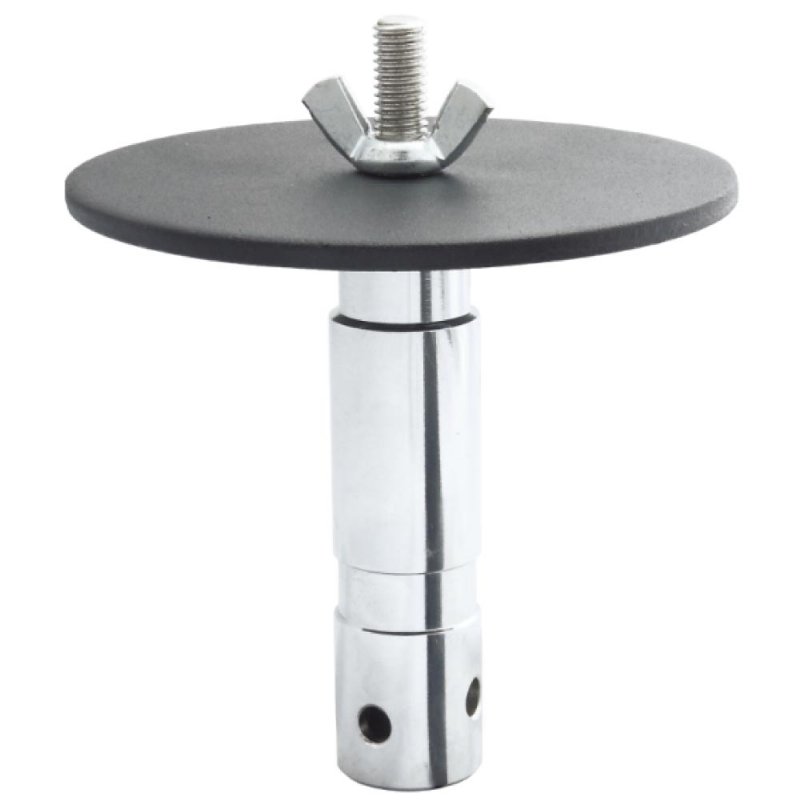 A 28mm steel spigot witha 12cm round mounting plate. Fits into a standard lighting stand or it can convert a 28mm receiver to an m10 thread withwing nut. Chrome plated.