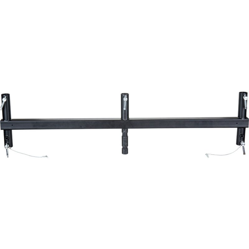 The junior multi-header is a solid steel square tube, 40 inches (100cm) length withanti-reflection black coating. Five junior receiver s are welded to the header for a maximum of five lighting fixtures. The header is attached witha junior stud (28mm) for a universal stand top or any mounting accessories that come witha junior socket. Max loading weight is 110.2lbs (50kg). When loaded on one side only, the max loading weight is 30lbs (15kg).
