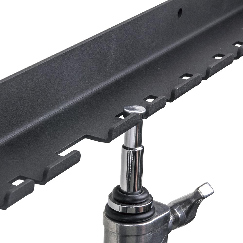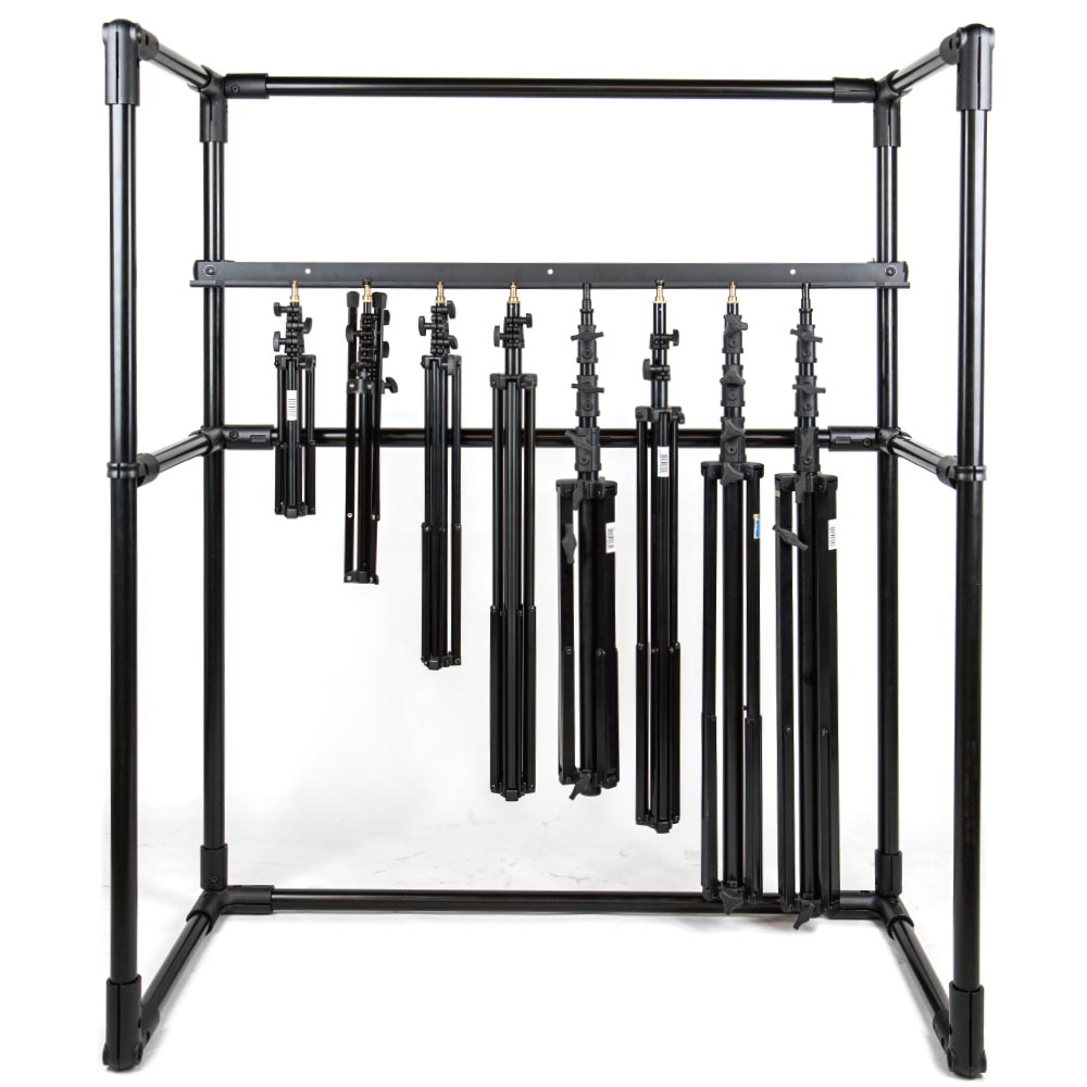 Kupo Black Stand Hanger for Studio or Truck 46.5" - great storage solution for light stands whether it be on a truck or in the studio. -made of steel and featuring a matte black surface. - recommended to mount on to a 2x4 or 2x2 to help prevent scratching or hitting the wall when stands are mounted. - place stands on stand hanger using the baby mount or the stand holder found on upper spider casting of most heavy duty baby stands. -stand hanger can also be mounted on autopoles using 2- 3 or 4 way clamps.